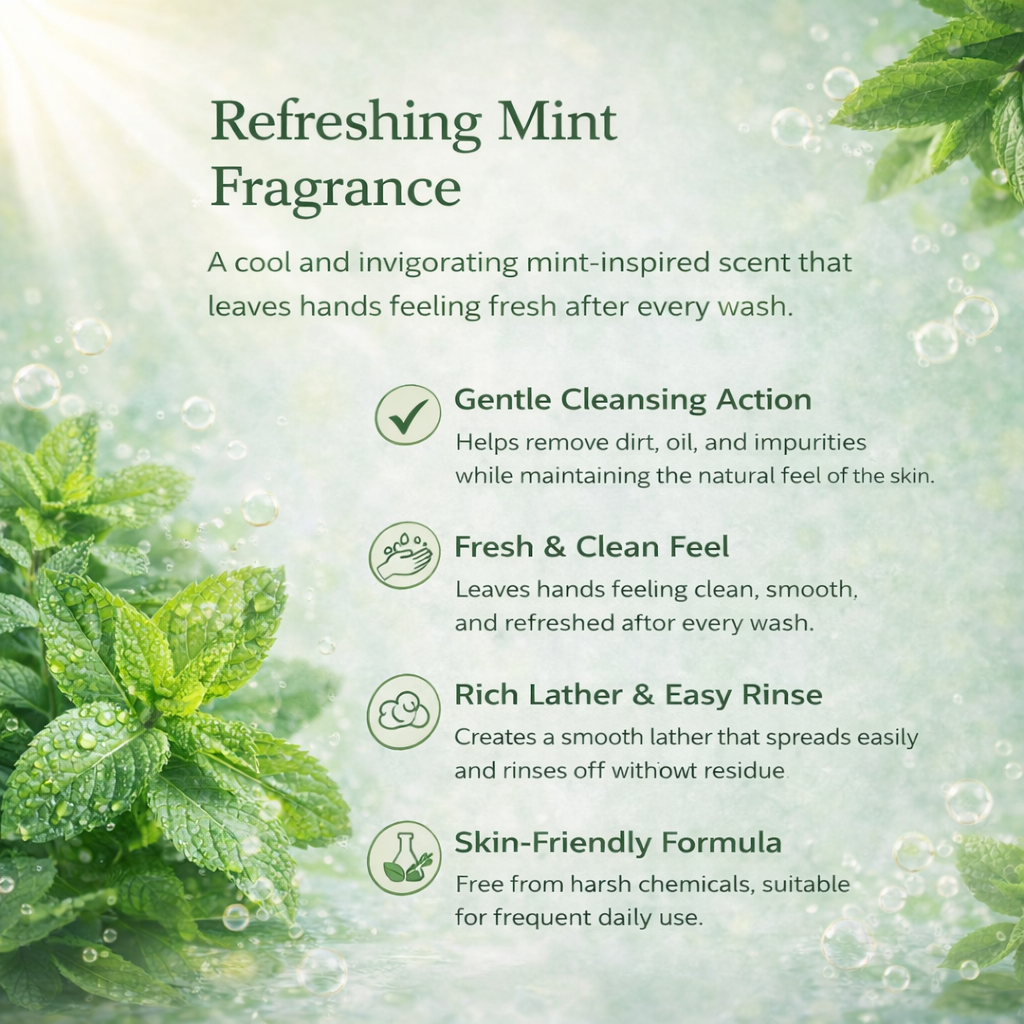 - Refreshing Mint Fragrance: A cool and invigorating mint-inspired scent that leaves hands feeling fresh after every wash.