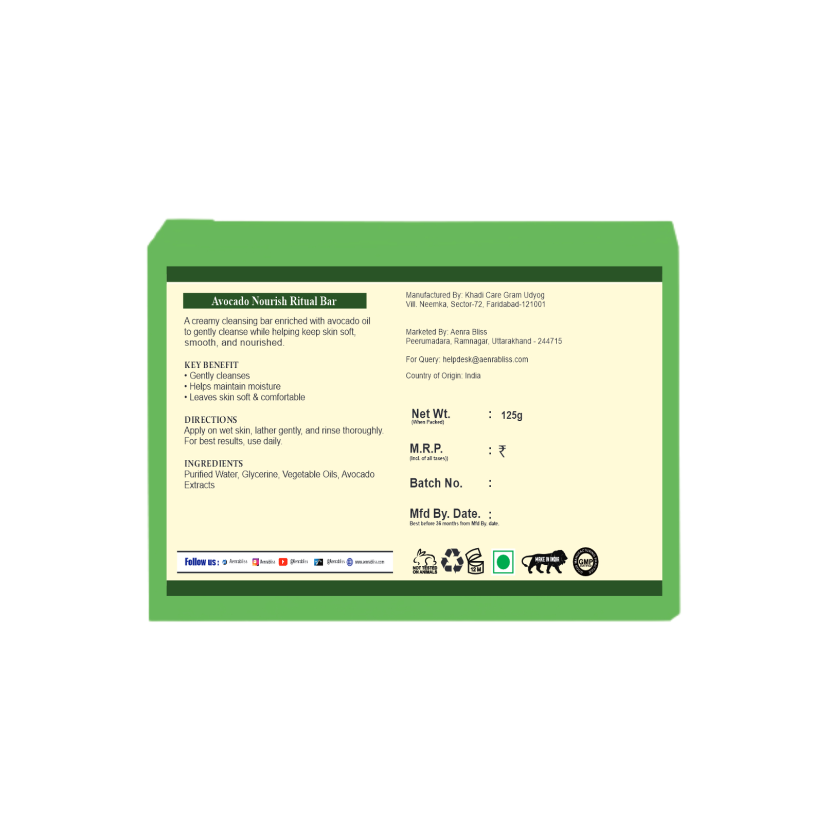 The Avocado Nourish Ritual Bar by Aenra Bliss is thoughtfully handcrafted using skin-loving ingredients that gently cleanse while locking in moisture. Rich in avocado extract, this bar helps nourish dry and tired skin, leaving it soft, smooth, and refreshed after every wash.